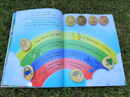 As the author of Conker the Chameleon it was my primary focus to enable children to see different feelings modelled throughout the pages and in turn have the opportunity on the activity pages to explore their own feelings. It is widely believed that children learn best in a play environment, so play resources such as Emotion Stones teamed with a story in which they can experience what the characters are feeling can open up these lines of communication in a safe and supportive setting and allow them to build the foundations of emotional literacy.