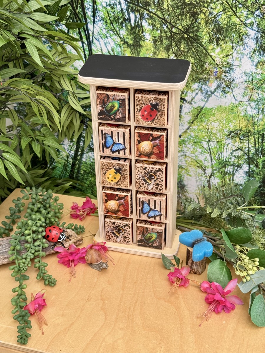 • Set contains one Bug Hotel 10-Frame with ten solid pine bug cubes.