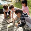 Set contains eight stones: acorn, dandelion seedhead, feather, maple leaf, maple seeds, pine cone, snail shell, spider’s web. Stones measure approx 3”. Safe for 2+.