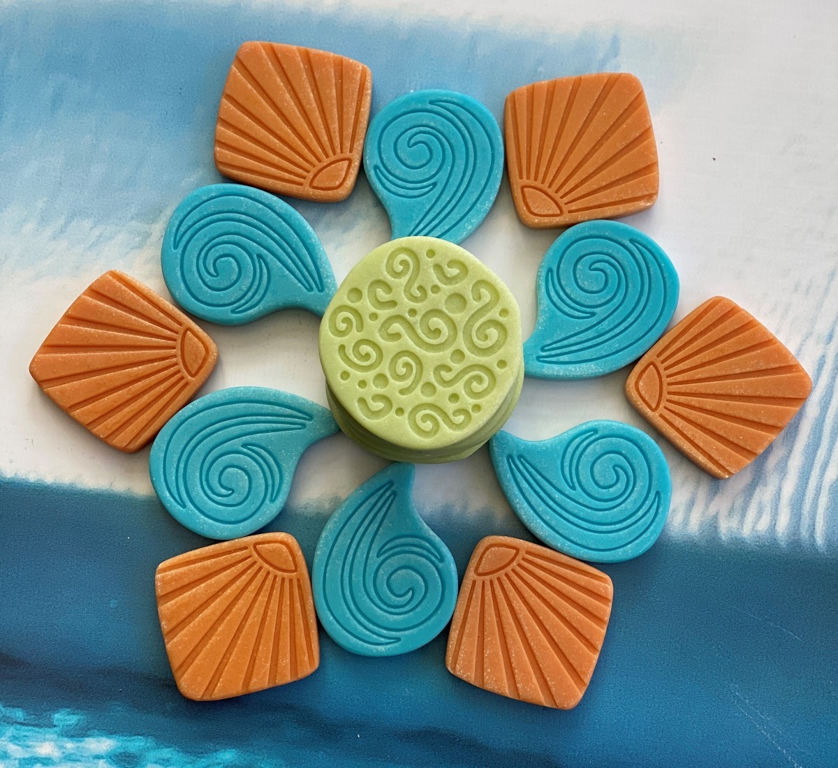 Watery habitats filled with swirling waves, beautiful shells, and fascinating corals will immerse children into imaginary underwater worlds that will inspire play, promote creativity, and enhance language development. Each sensory stone is engraved on one side and smooth on the other to encourage open-ended small world play.