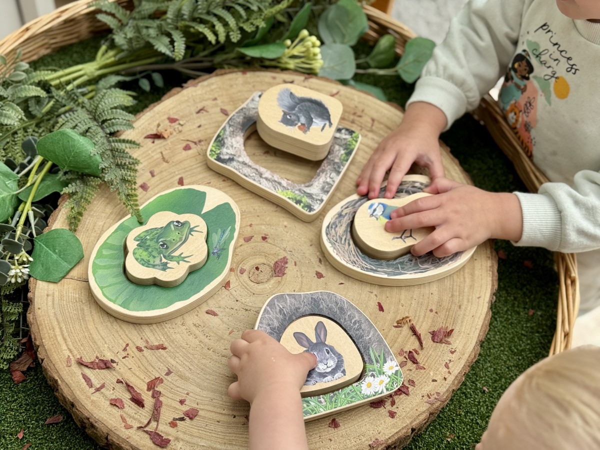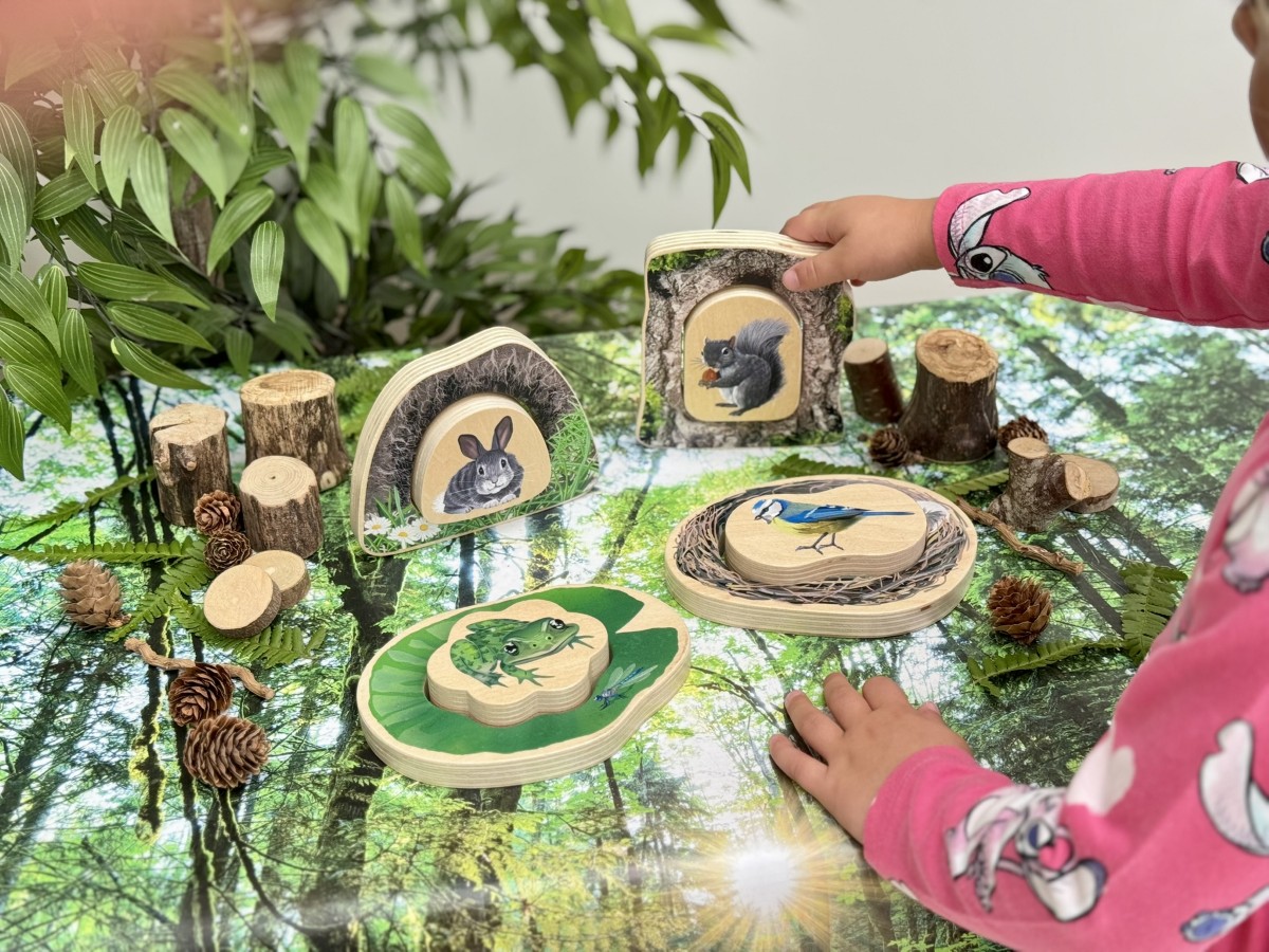 Perfect for hide-and-seek play and sparking curiosity about the natural world, the chunky pieces can also stand up to encourage open-ended storytelling and imaginative play.